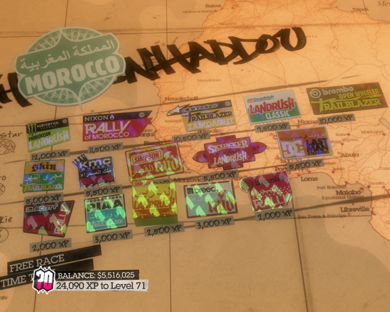 Игровой процесс включает множество режимов: от классических ралли до экстремальных заездов по бездорожью, джимханы и соревнований на время. Игроки могут участвовать как в одиночных, так и в многопользовательских соревнованиях.
