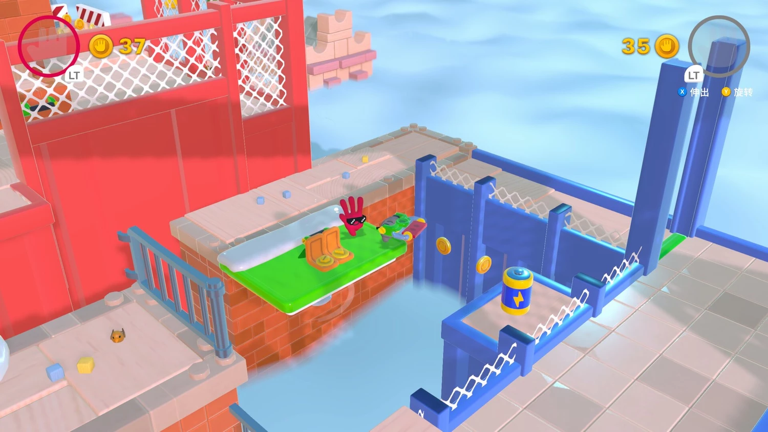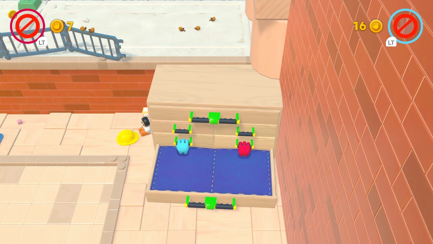 По мере продвижения по игре герои получают доступ к дополнительным приспособлениям, расширяющим возможности взаимодействия с миром. Одним из самых любопытных инструментов становится удлиняющаяся рука — она позволяет дотянуться до отдалённых платформ и предметов, до которых обычным способом не добраться. Не менее интересным устройством оказывается прочная Резинка: используя её, игроки могут превратить своих персонажей в живую рогатку, чтобы запустить одного из них в труднодоступные зоны, куда иначе попасть невозможно.