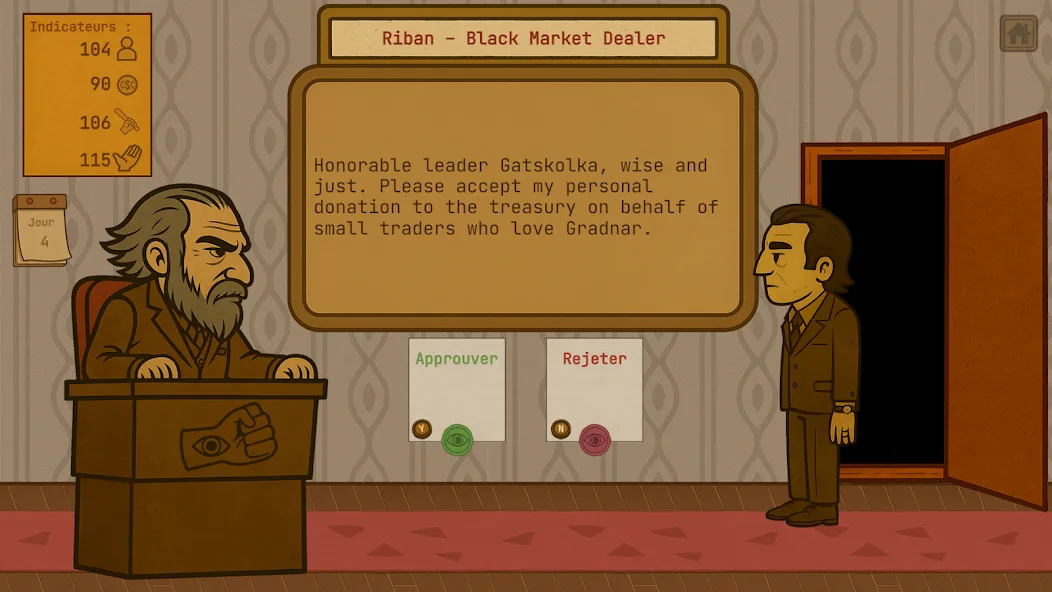 Dictator Simulator: Gradnar погружает игрока в напряжённую атмосферу управления вымышленным восточноевропейским государством, где каждый шаг диктатора может стать как триумфом, так и катастрофой.