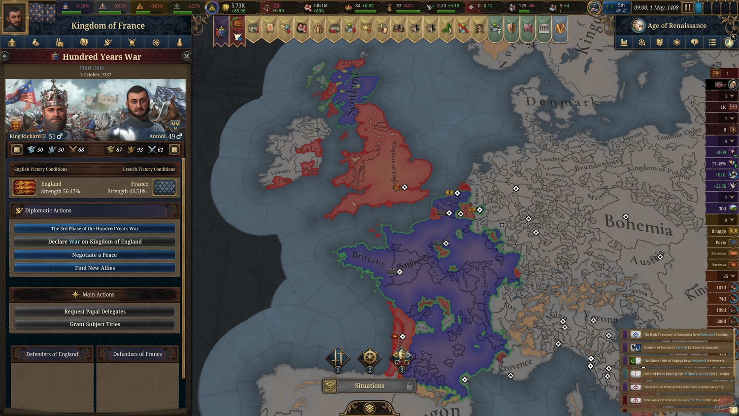 Игроку доступен огромный выбор наций — от великой династии Юань до небольших итальянских городов‑государств. Каждая из них обладает уникальными особенностями, историческими предпосылками и потенциалом для развития. При этом геймплей строится на детально проработанной системе населения: каждая провинция представляет собой сложный социальный организм, где сосуществуют группы людей с разными культурами, вероисповеданиями и социальным статусом.