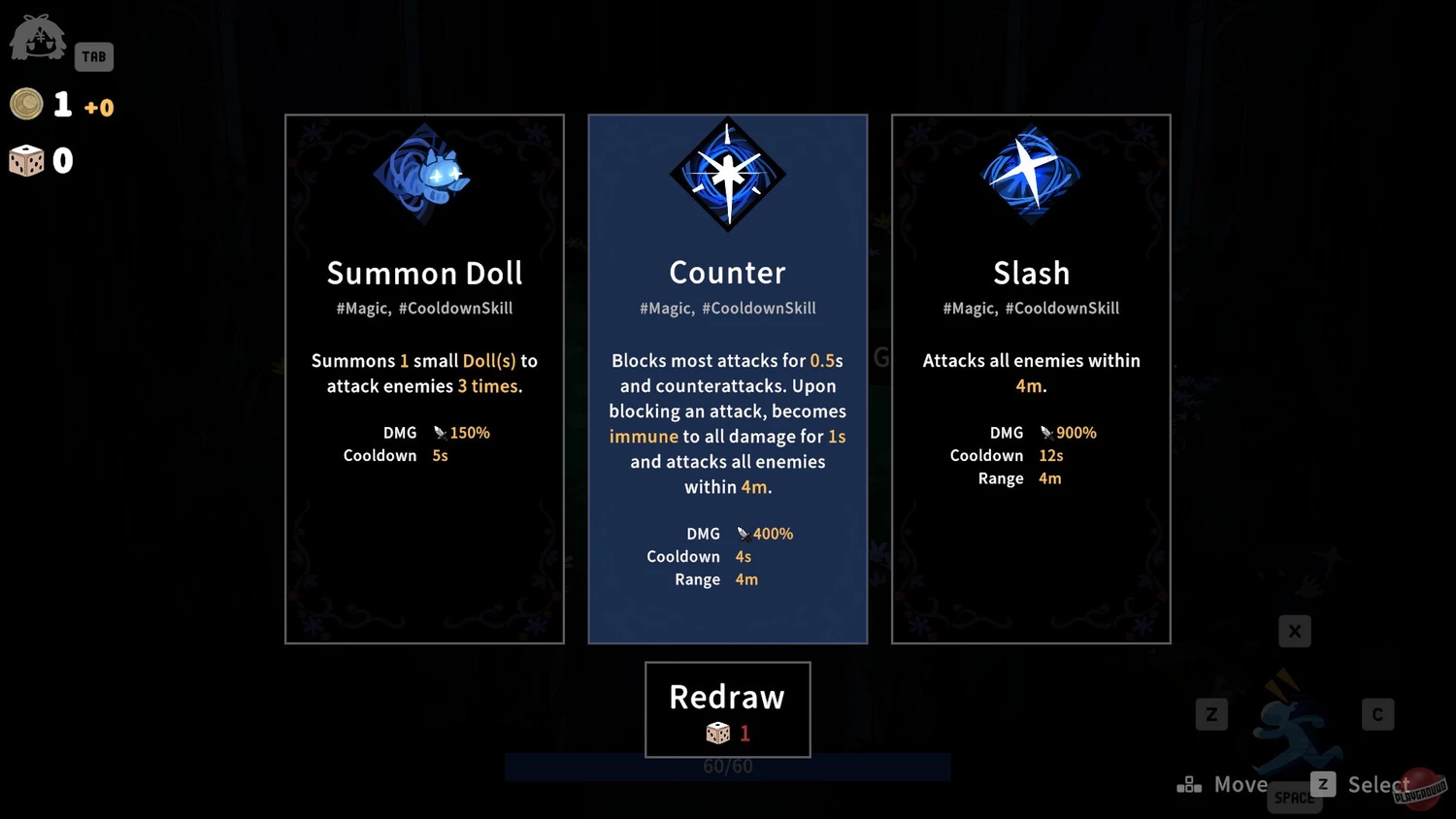 Прокачка персонажа реализована через систему случайных талантов, которые открываются с каждой новой попыткой. Смерть в игре не является поражением — она становится инструментом прогресса, позволяя улучшать способности и открывать новые механики.