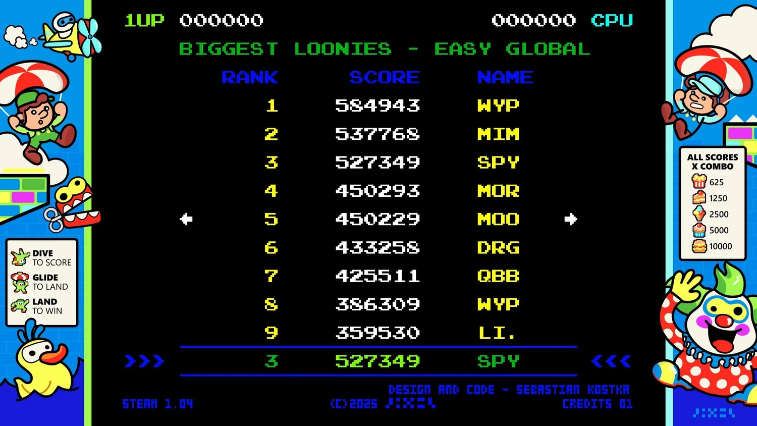 Визуальный стиль и звуковое сопровождение: Looney Landers сознательно обращается к эстетике ретро‑игр, используя яркую 4‑битную пиксельную графику, которая мгновенно вызывает ассоциации с классикой восьмидесятых. Аудиоряд дополняет атмосферу: запоминающиеся чиптюны от naruto2413 создают энергичный фон, усиливая ощущение погружения в эпоху ранних аркадных автоматов. Кроме того, игра поддерживает вывод на CRT‑телевизоры и предлагает нативный режим 240p с классическим соотношением сторон 4:3, что позволяет максимально аутентично воспроизвести визуальный опыт старых игровых систем.