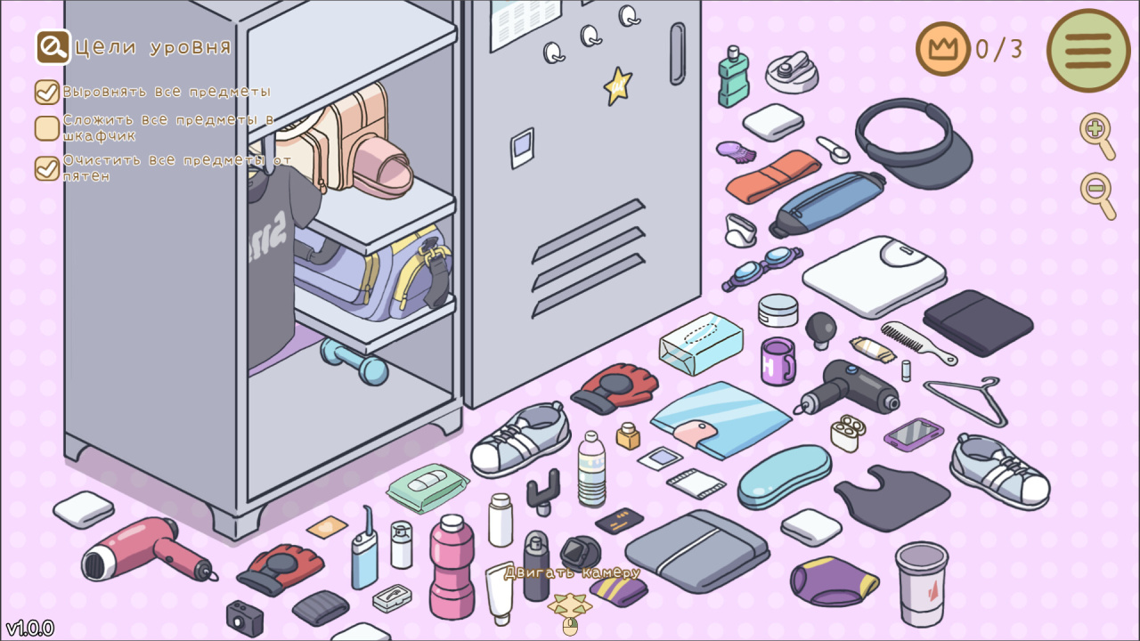 Вместо привычных для жанра механик вроде ограничений по времени или системы подсчёта очков проект предлагает совершенно иной подход: здесь нет стресса и гонки, только размеренное погружение в процесс упорядочивания окружающего пространства. Разработчики сознательно отказались от соревновательных элементов, сделав ставку на терапевтический эффект от наведения порядка — и это задаёт игре особый, успокаивающий ритм.