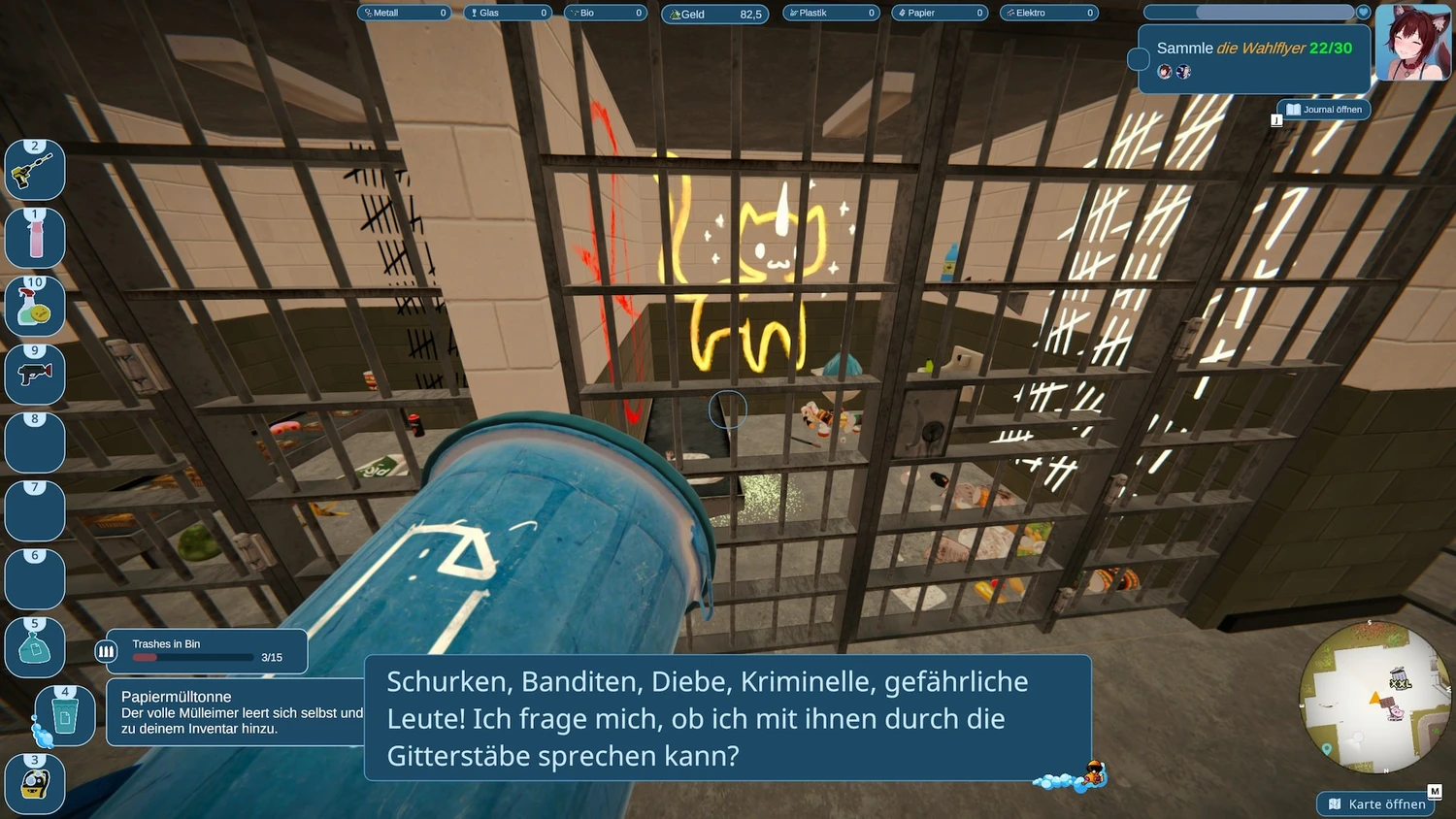 Мир игры пестрит деталями, создающими неповторимую атмосферу: мусорные баки с цветовой кодировкой, станции для крафтинга и, конечно же, огромное количество кошек, которых всегда можно погладить. При этом философия проекта подчёркивает: в этом безумном мире беспорядок ценится выше идеального порядка.