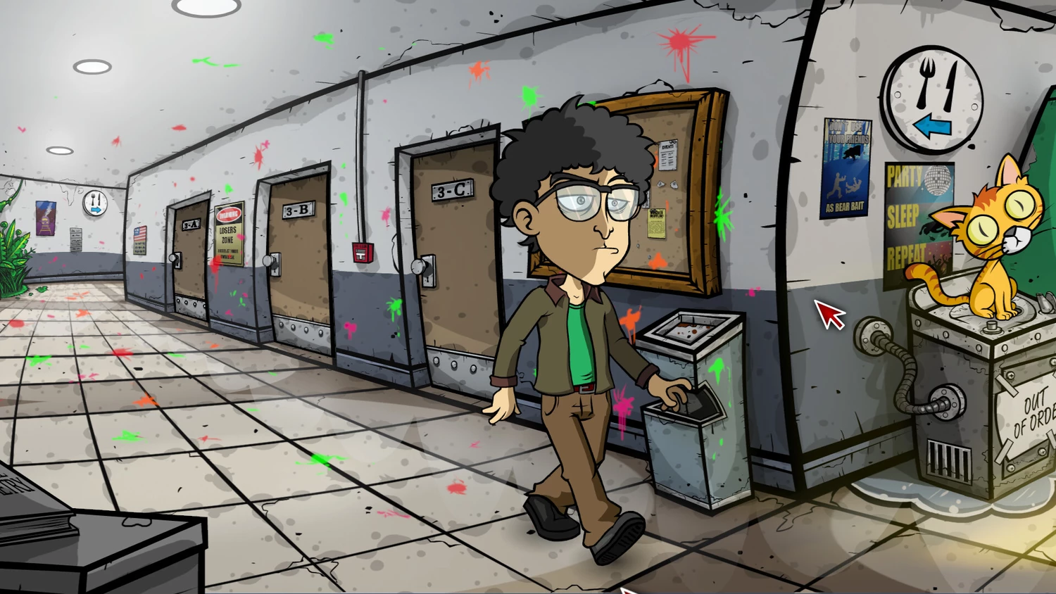 Любители исследовать мир найдут для себя немало интересного: кампус буквально напичкан коллекционными предметами. Среди них — пародийные отсылки к известным играм, такие как «Last Fantasy VII» и «Plastic Gear Solid». Нахождение этих артефактов не остаётся без награды: они открывают бонусные сюрпризы, добавляя мотивации к тщательному изучению локаций.