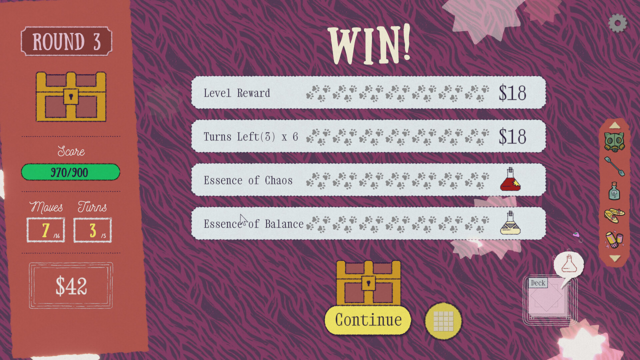 Суть игрового процесса: Replicat переосмысливает привычный формат «найди пару», смещая акцент с чистой памяти на тактическую глубину. Вместо того чтобы механически запоминать расположение плиток, игрок выстраивает долгосрочную стратегию, грамотно комбинируя карты и используя их эффекты. Ключевой навык здесь — не фотографическая память, а умение предвидеть последствия своих ходов и адаптироваться к меняющимся условиям. Уютная атмосфера, созданная дизайном кошачьих персонажей и джазовым саундтреком, контрастирует с интеллектуальным напряжением, превращая игру в своеобразное медитативное, но требующее сосредоточенности приключение.
