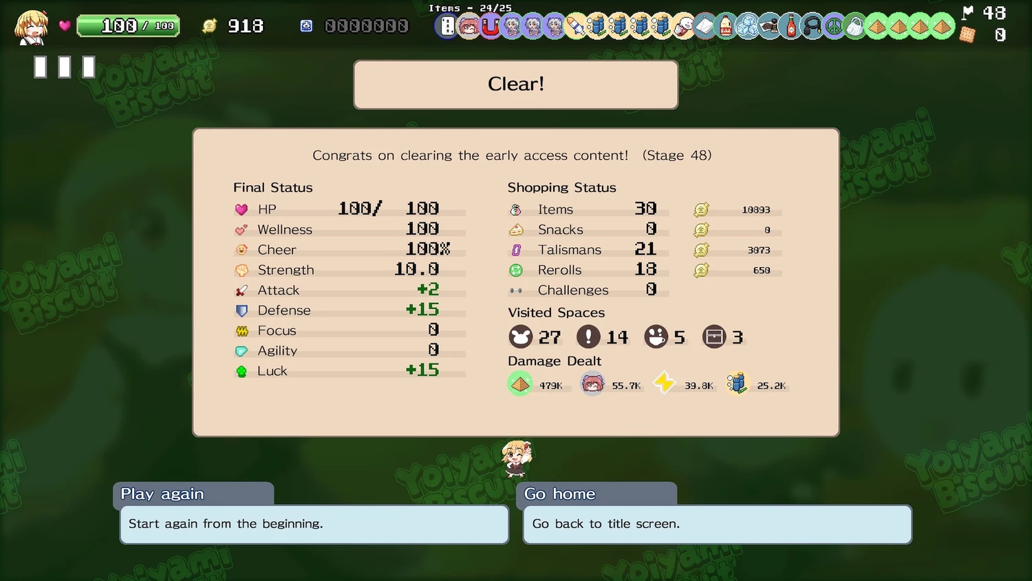 Игра создана авторами tripper_room и ikaikaiyuu, и в ней чувствуется уважение к канону Touhou: фирменный стиль bullet hell сохранён, но обогащён roguelike‑элементами и причудливой гастрономической тематикой. Благодаря огромному выбору закусок, предметов и талисманов каждый забег получается неповторимым — никогда не знаешь, какая случайная комбинация подарит неожиданный прорыв или поставит в тупик. В итоге «Yoiyami Biscuit» удаётся быть и узнаваемой по духу Touhou, и свежей за счёт оригинальных идей, превращая бойню с закусками в увлекательное тактическое приключение.
