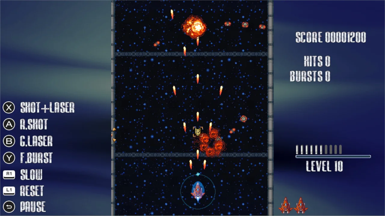 Визуальное оформление и геймплейные особенности: чёткая пиксельная графика и продуманная отрисовка объектов помогают игроку ориентироваться даже в самые напряжённые моменты, когда экран заполнен снарядами и вражескими кораблями. Научно‑фантастические пейзажи на фоне создают атмосферу далёкого космоса, не отвлекая при этом от игрового процесса. Особую сложность добавляет постоянно движущаяся вверх камера — она вынуждает игрока непрерывно перемещаться и следить за происходящим на всём пространстве экрана.