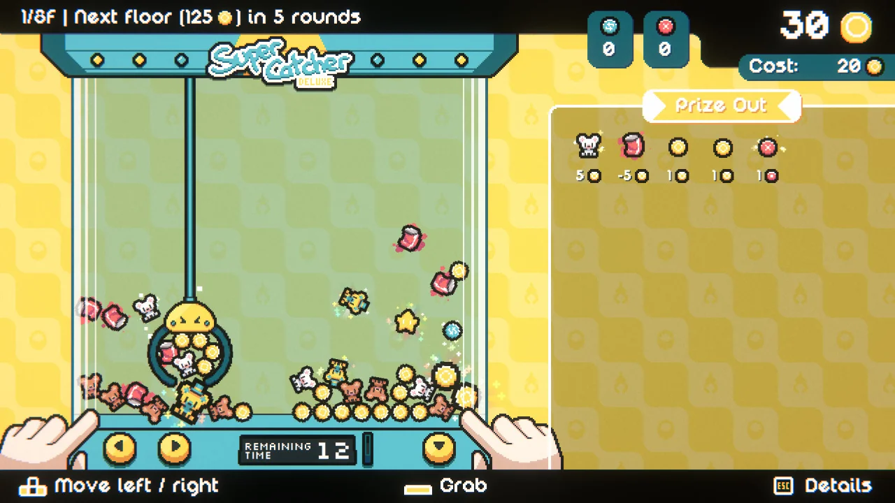 Развитие и модернизация: продвижение по игре подразумевает постепенный переход от дешёвых аппаратов к элитным терминалам на верхних этажах. Чтобы добраться до них, игроку необходимо модернизировать механическое щупальце — ключевой инструмент для извлечения предметов из стеклянных боксов. Улучшения не даются просто так: они требуют ресурсов, которые нужно грамотно накапливать и распределять, балансируя между текущими потребностями и долгосрочными целями.