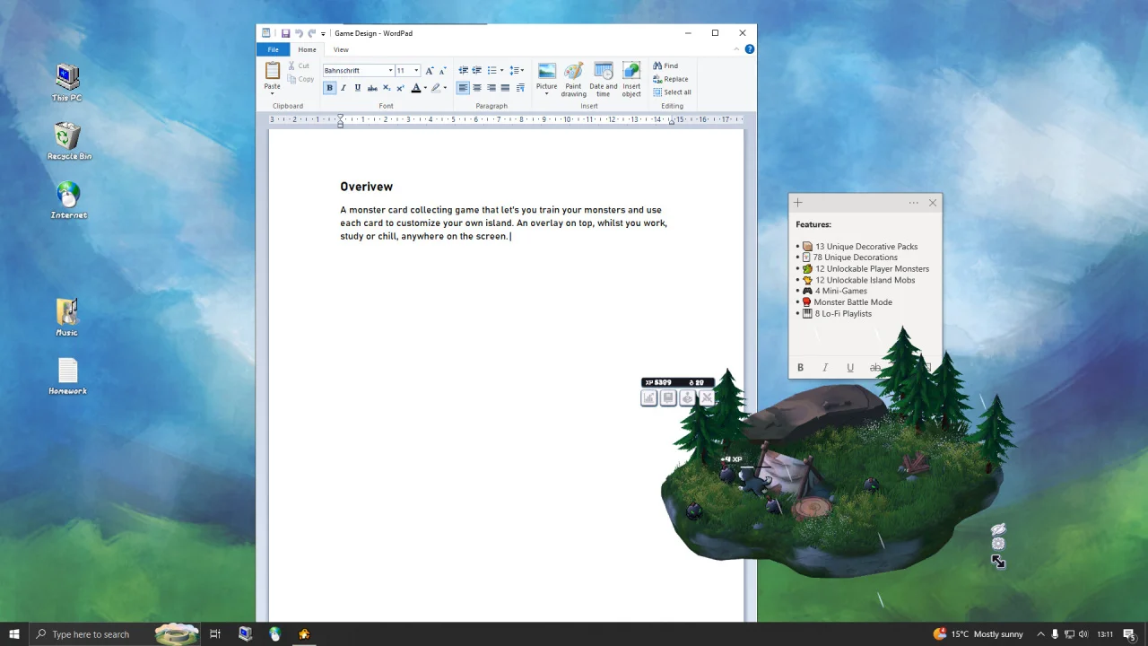 Idlemon — это стратегический симулятор, в котором игрок разводит фантастических существ на виртуальном острове, развивающемся в фоновом режиме во время учёбы или работы, сопровождаемый атмосферной музыкой и разнообразными визуальными стилями.