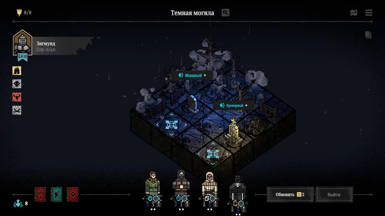 Мир и глубина стратегического планирования: действие игры происходит в мрачном готическом мире, погружённом в таинственный туман. Игроку предстоит исследовать процедурно генерируемую карту, где его ждут не только битвы, но и сотни текстовых событий. Эти ситуации предлагают сложные моральные и стратегические выборы: принятые решения могут принести ценные награды или обернуться непредвиденными трудностями, влияя на дальнейшую судьбу отряда. Богатство комбинаций обеспечивается за счёт более чем 140 уникальных наёмников с индивидуальными чертами и свыше 80 реликвий, которые создают бесчисленные синергии и открывают новые стратегические возможности.