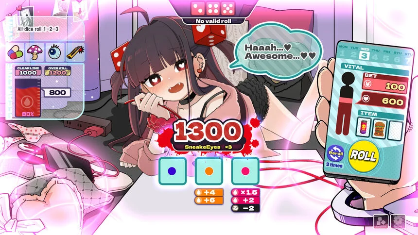 Суть игрового процесса: Menherarium выстраивает геймплей вокруг опасной игры в Чинчиро, где на кону оказывается кровь участника. Каждый бросок кубика становится моментом истины — он может приблизить к победе и заслуженной похвале либо привести к поражению с трудно предсказуемыми последствиями. Игроку предстоит решить, готов ли он идти по пути честной борьбы или предпочтёт рискнуть и попытаться обмануть систему: примечательно, что читерство в рамках Menherarium формально не запрещено, что добавляет дополнительный слой тактической глубины.