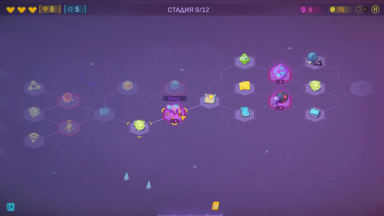 Столкновения с мини‑боссами: ключевой элемент прохождения — битвы с Ядрами, уникальными мини‑боссами, каждый из которых требует особой тактики. Например, Плоттер теряет мощность, если аватар движется прямолинейно, Равновесие ослабевает в случае совпадения двух характеристик, а Эмбер умело маскируется среди неразведанных гексов в конце хода — это вынуждает игрока постоянно анализировать ситуацию и продумывать действия на несколько шагов вперёд.