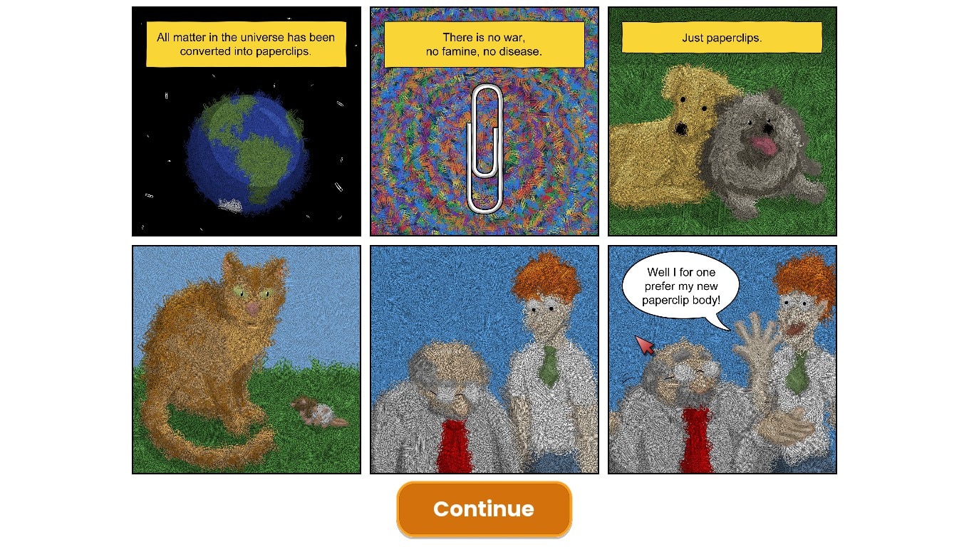Сюжетные сценарии и персонажи: каждый из шести сценариев предлагает нового героя со своим особым способом уничтожения мира. Например, в режиме Paperclip Maximizer игрок превращает всё на Земле в скрепки, а в Teeny Tiny UFO — управляет инопланетным кораблём, который похищает не только коров, но и множество других объектов. В Hungry Dragon предстоит вырастить дракона‑младенца, поглощающего всё вокруг, а в House Hippo — управлять мифическим канадским существом, которое, случайно съев кленовый сироп, начинает расти и пожирать сначала дом, а затем и целый город. Сценарий Fall of Atlantis позволяет выступить в роли питомца богов Цетона, которому поручено уничтожить гордый остров‑цивилизацию, а Clay Goo переносит в альтернативную глиняную вселенную, где аморфный blob, упавший с неба, поглощает всё, что меньше его.