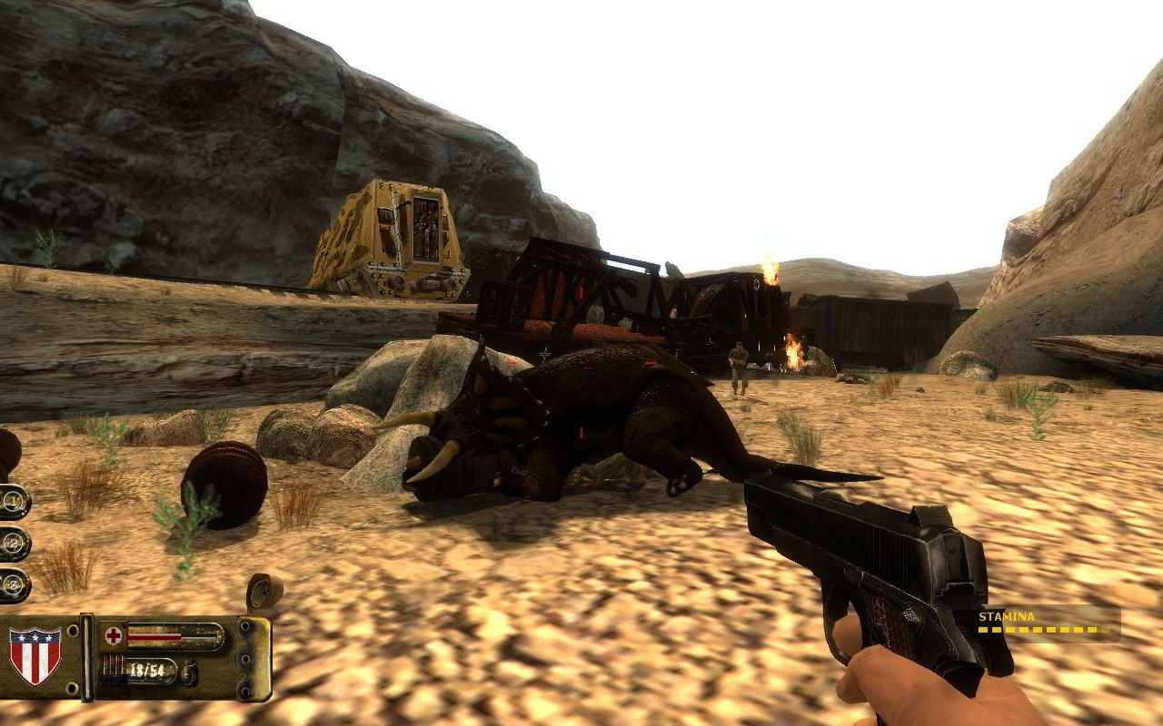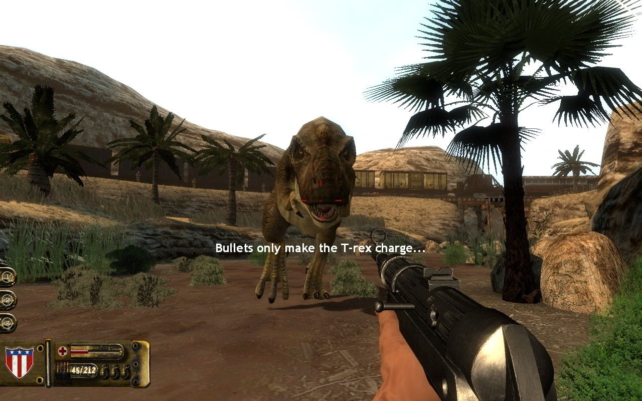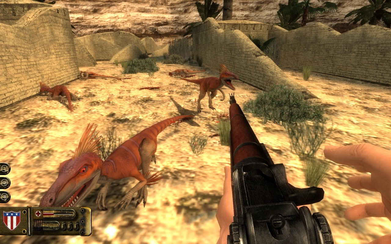 Dino D-Day (2011) — это уникальный многопользовательский шутер, сочетающий элементы альтернативной истории и фантастический сеттинг с динозаврами.