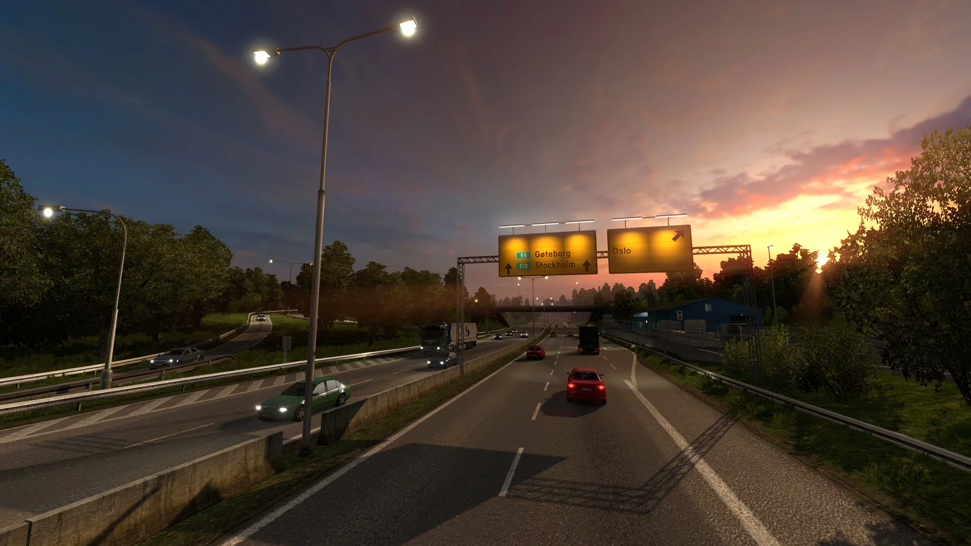 Общее описание и технические улучшения: дополнение Scandinavia по объёму нововведений приближается к полноценному сиквелу. Разработчики основательно переработали графический движок, добившись заметного прогресса в визуальной составляющей. Реализм смены дня и ночи вышел на новый уровень, а погодные эффекты стали куда более убедительными. Особое внимание уделили освещению и небесным сценам — теперь они выглядят натуралистичнее. Благодаря обновлённому рендерингу текстуры приобрели чёткость, а общая картинка стала контрастнее. Параллельно улучшили звуковую систему: звуки двигателя, коробки передач и пневматики в кабине грузовика теперь воспринимаются гораздо правдоподобнее. Кроме того, симулятор стал лучше оптимизирован, а список достижений заметно расширился.
