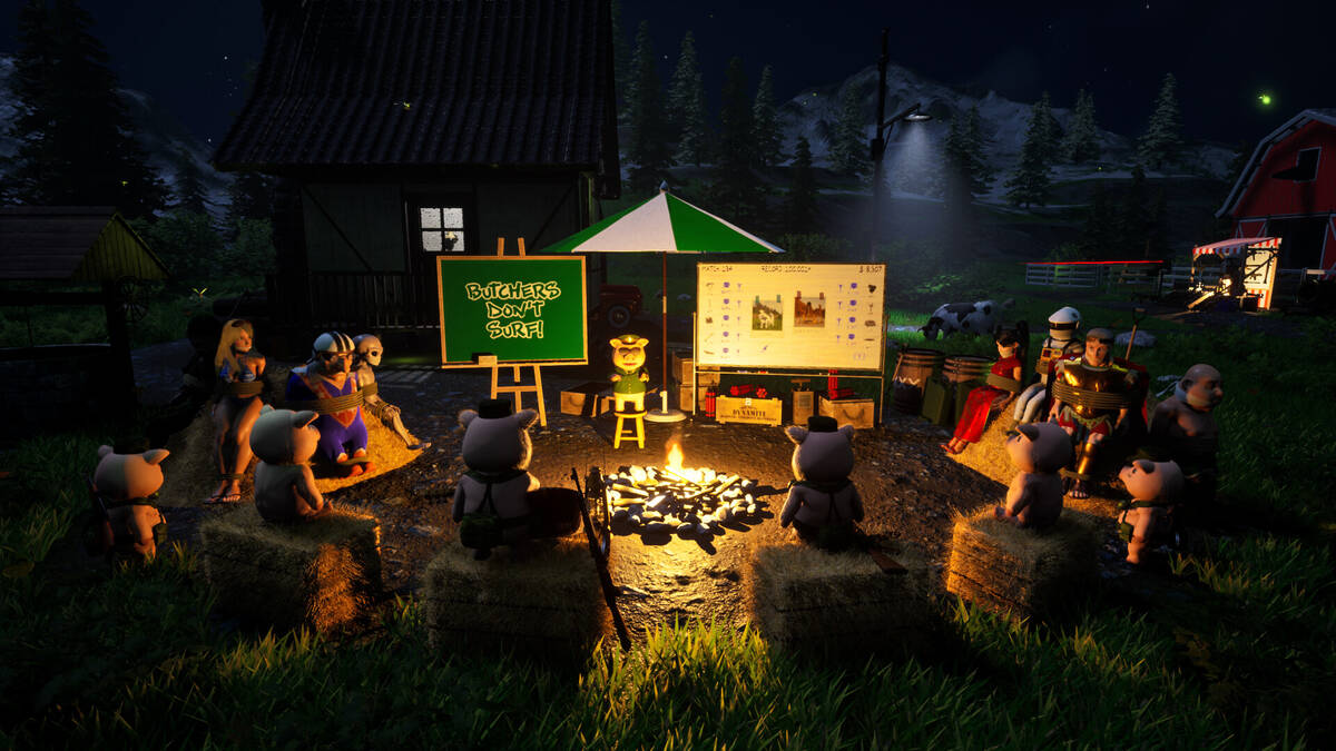 Butchers Don’t Surf! (2023) - Действие игры разворачивается в мире, где странный космический монолит вызывает хаос повсюду. Транспортные средства начинают двигаться самостоятельно, летательные аппараты летают без управления, а дикие животные вторгаются в города. Особую роль в сюжете играют умные свиньи с альпийской фермы, которые планируют захватить этот загадочный монолит. Они запускают пожилого фермера из катапульты, чтобы он выполнил несколько важных миссий.