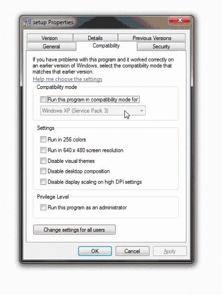 • Запустите инсталлятор с правами, как показано на картинке (меню "Свойства" при нажатии правой кнопки мыши на файле):