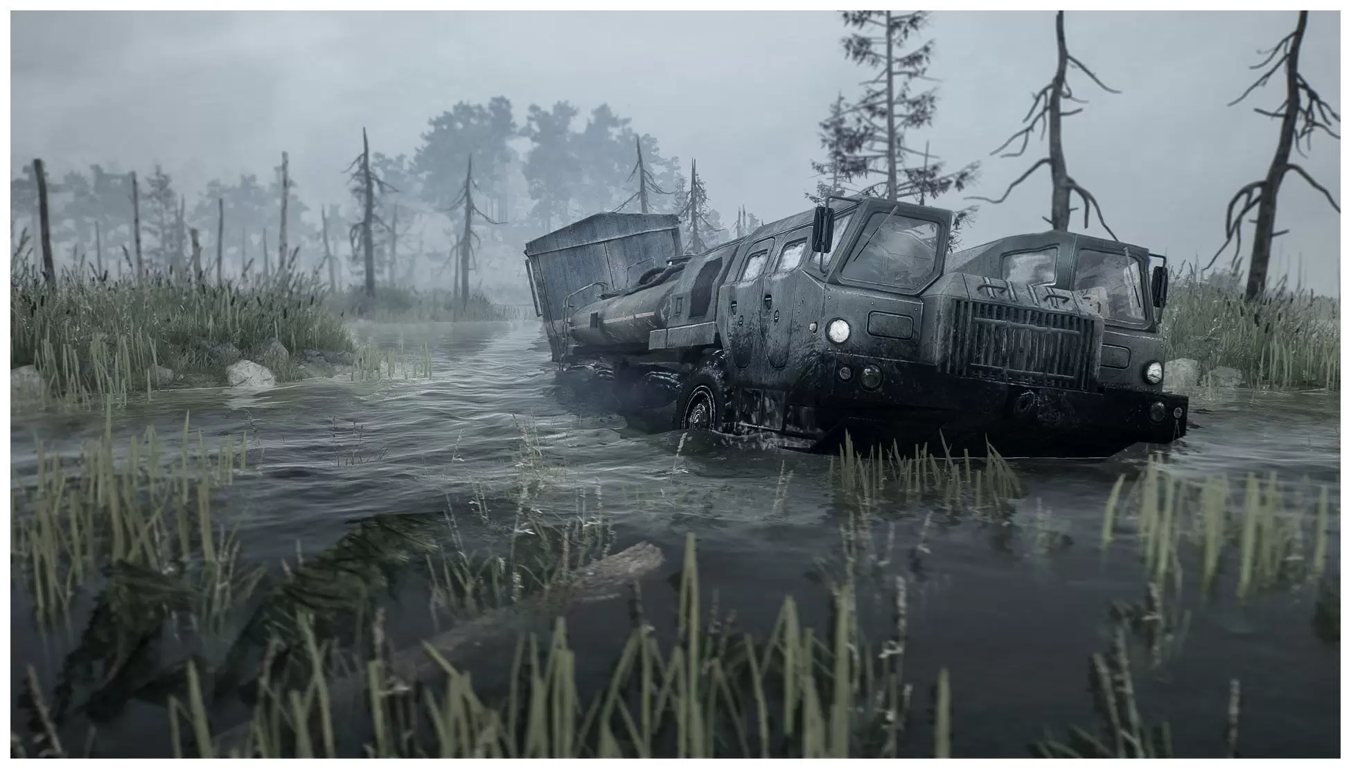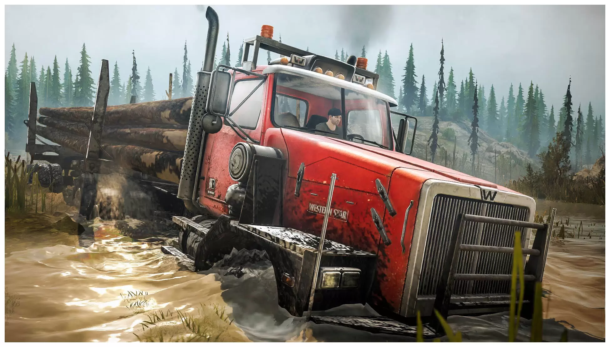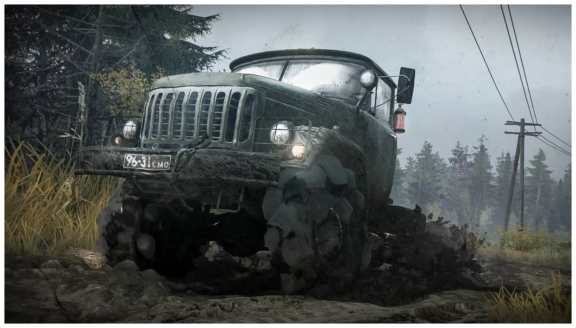 Реализм и физическая модель: одна из главных сильных сторон MudRunner — продвинутая физическая модель, которая реалистично имитирует взаимодействие транспорта с окружающей средой. Грязь деформируется под весом машины, реки оказывают сопротивление при пересечении, а крутые подъёмы требуют точного расчёта мощности. Графика игры, переработанная по сравнению с предшественниками, создаёт убедительную картину сурового сибирского ландшафта: детализированные текстуры, реалистичные эффекты воды и грязи, атмосферные погодные явления. Всё это работает на ощущение полного погружения в мир бездорожья, где каждый метр пути даётся с трудом.