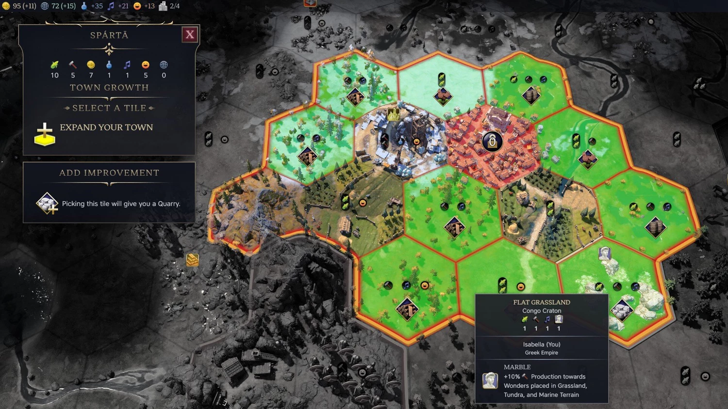 Строительство и развитие: игроку предстоит закладывать города, грамотно распределять ресурсы и наращивать военную мощь. Основанные поселения нужно развивать так, чтобы максимально использовать потенциал окружающих земель: возводить нужные здания, налаживать производство и торговлю, следить за уровнем довольства населения. Параллельно важно создавать боеспособную армию — столкновения с другими цивилизациями практически неизбежны, а исход сражений напрямую зависит от подготовки и тактики.